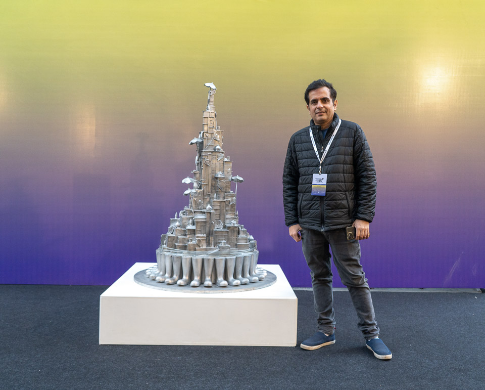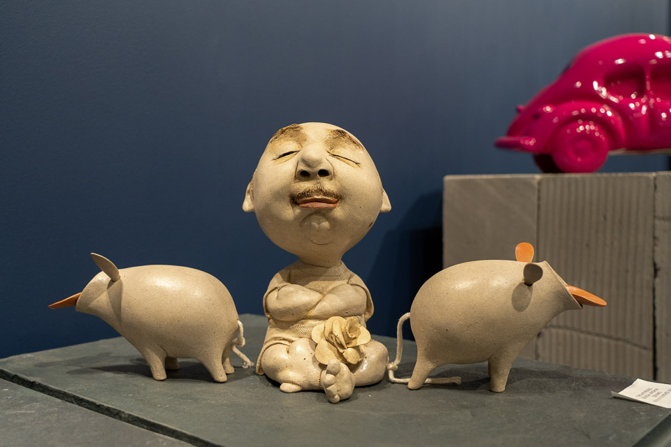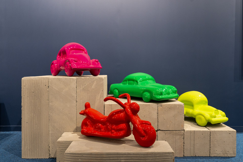 Wood sculptures by Rajendra Pratap Singh that speak through form and weight. Metal cars by Suchit Sahni that revisit memory through crafted detail. Paintings by Harpreet Narula and Mangesh Rajguru that open up space for reflection and narrative.